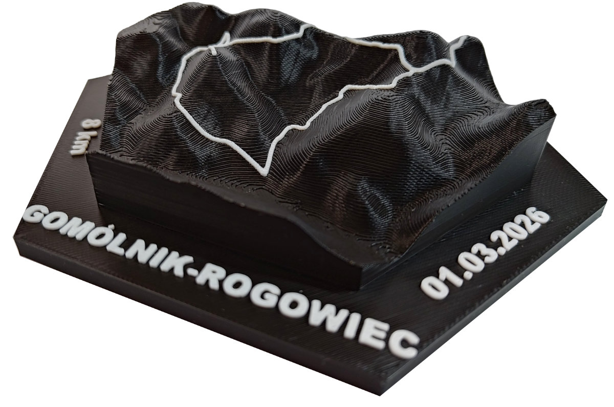 Zamień swoją trasę w fizyczną mapę 3D z reliefem terenu.